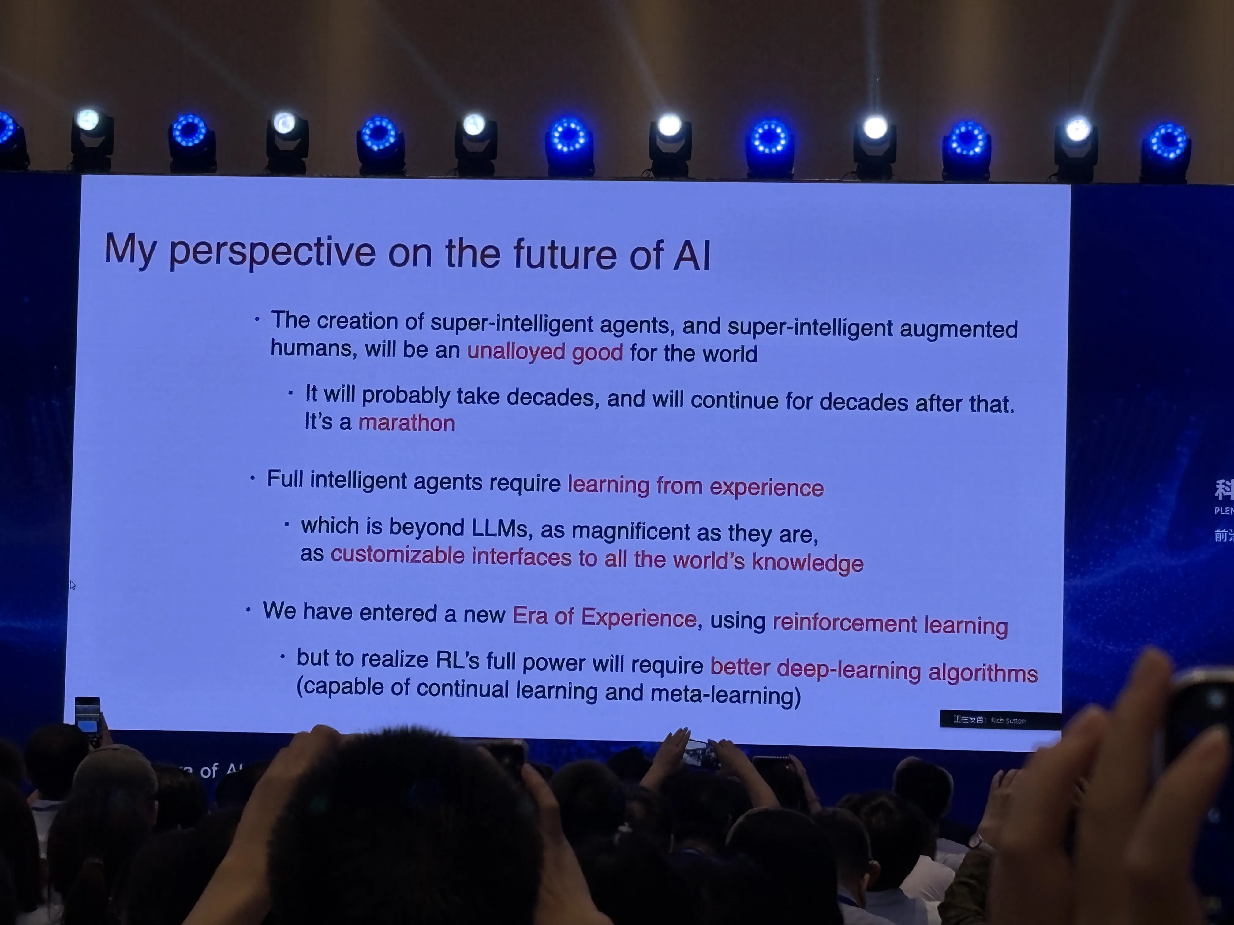 - 此前的AI是基于人类数据进行训练的,但是传统的静态数据已经被用完了,超级智能将依赖与现实交互的经验,从经验中学习,以知识巩固经验。强化学习和元学习的关注度将越来越高。