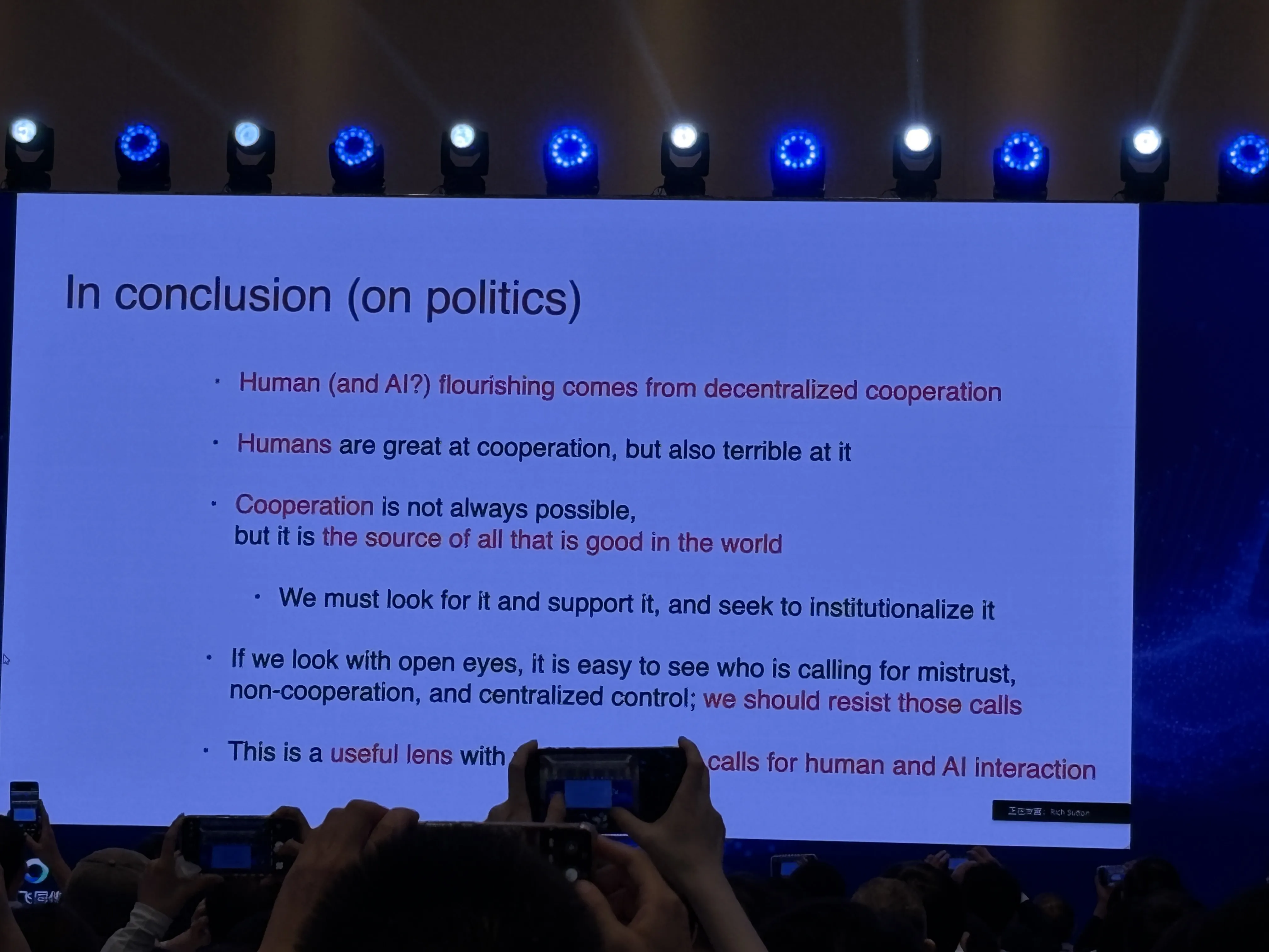 - AI哲学。印象深刻的是,Richard认为AI智能终将超越人类,而权力会流向更高的智能。他认为AI产生自人类是一个以人类为中心的视角,从宇宙角度看,人类只是从复制时代通往设计时代的一个”中间态”。